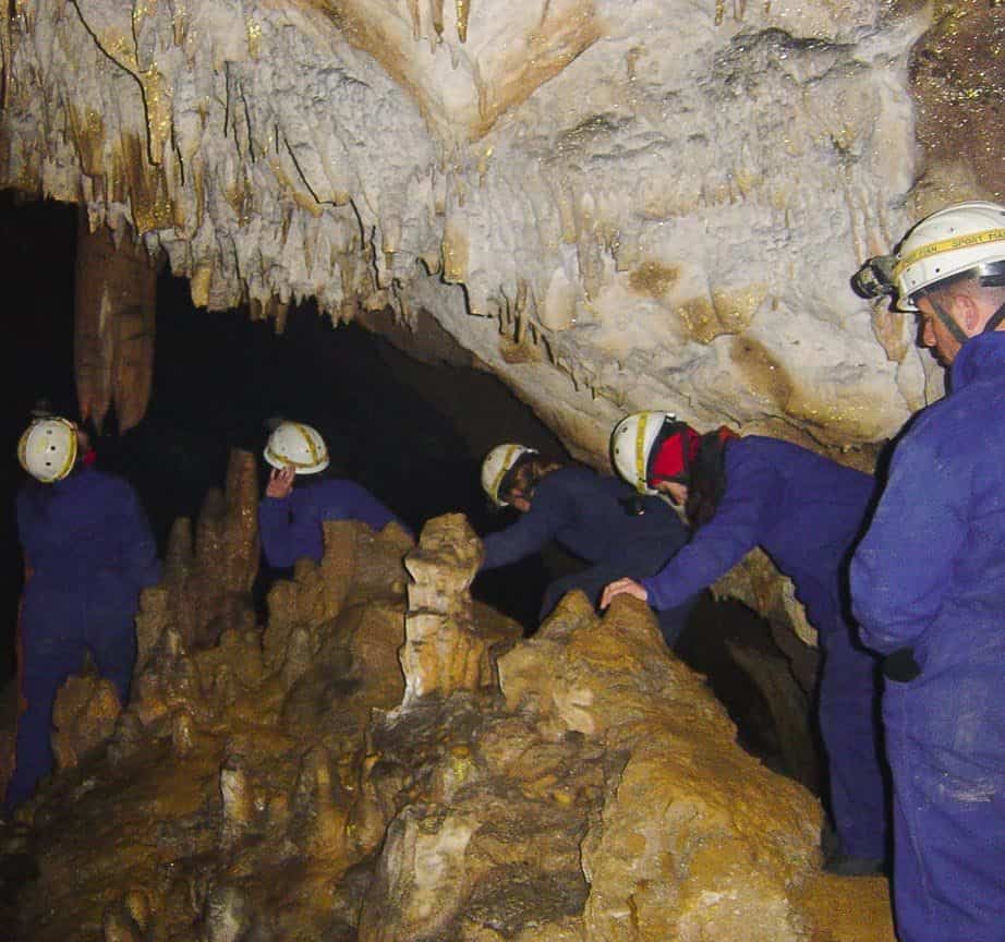 En la cueva veréis estalactitas, estigmitas, coladas y columnas, el monitor os explicara como se llegan a formar todas ellas y algunos aspectos básicos de la espeleología. Si tenemos la suerte de que no haya mas grupos en la cueva podremos disfrutar de una experiencia sensorial única en la sala de las coladas. Esta es la cueva que haremos habitualmente.